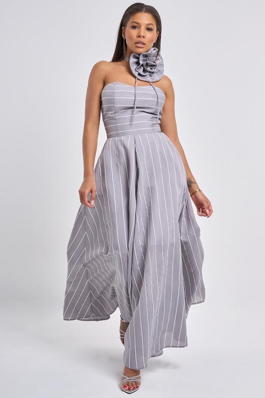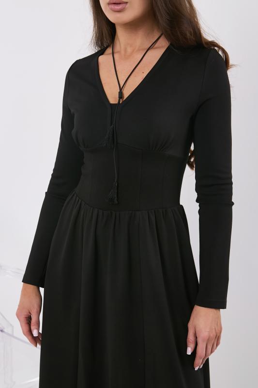• Особенности: Платье прилегающего силуэта с открытыми плечами на подкладке. Верх платья корсетного типа усилен по боковым швам ригиленом, что позволяет носить платье без бретелей. Предусмотрена возможность для пристегивания готовых бретелей, на подкладке для этого выполнены петли. В боковых швах - карманы, застежка на молнию в среднем шве спинки. В дополнение к образу можно преобрести чокер-цветок.