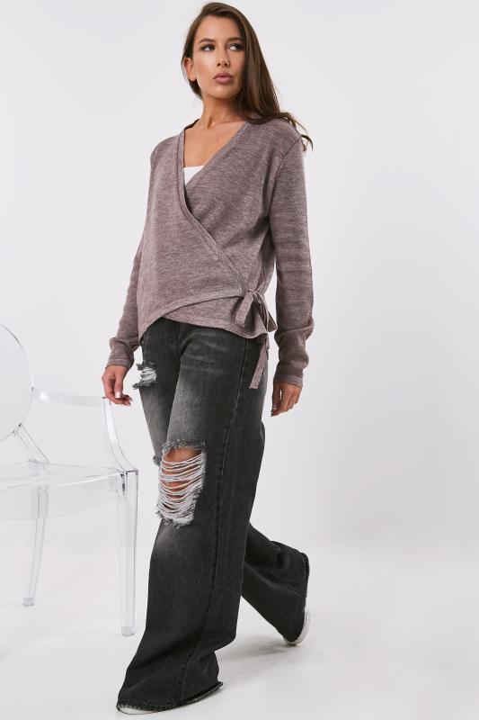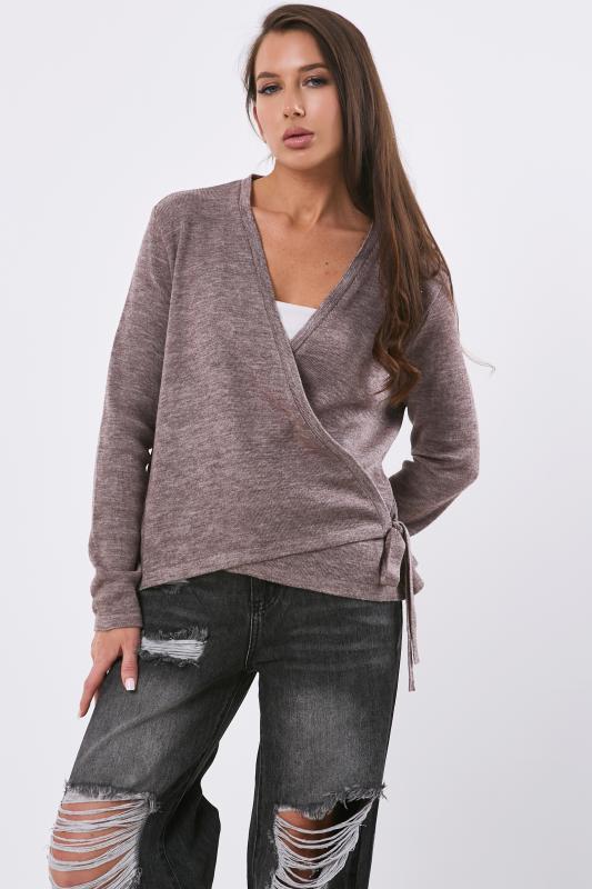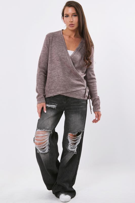 • Особенности: Вязаный кардиган прямого силуэта с запахом. Выполнен из полушерстяной пряжи. Полки кардигана фиксируются на завязках.