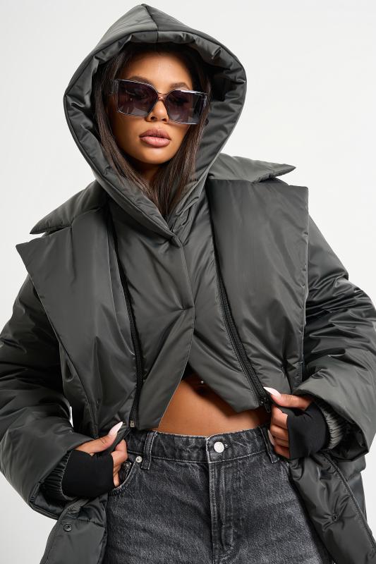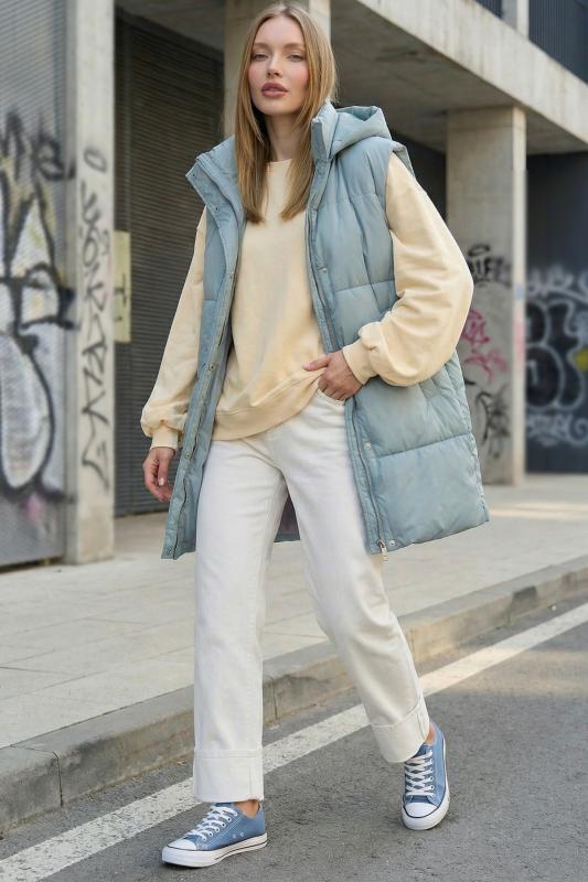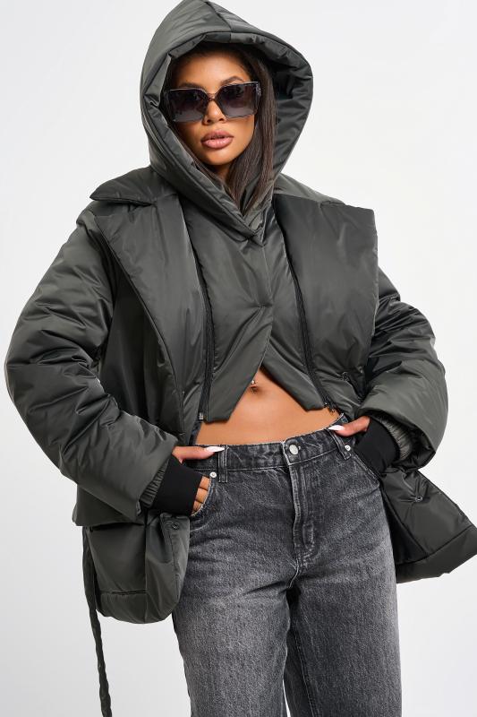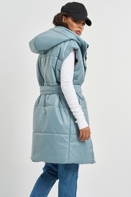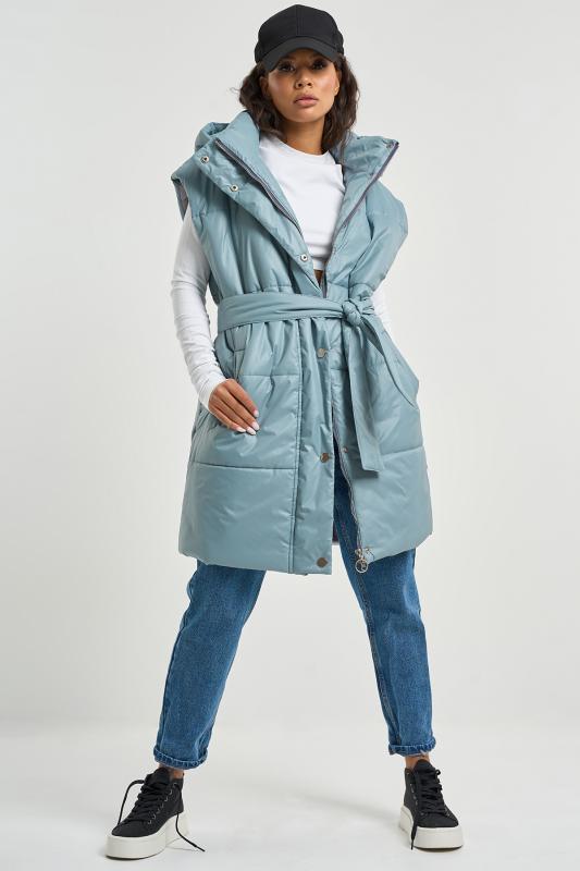 • Особенности: Жилет утепленный прямого силуэта из курточной ткани на подкладке. Детали: воротник стойка, съемный капюшон, спущенная линия плеча, прорезные карманы с листочками, по переду притачная планка с застежкой на кнопки, съемный пояс из основной ткани в комплекте. Застежка на молнию.