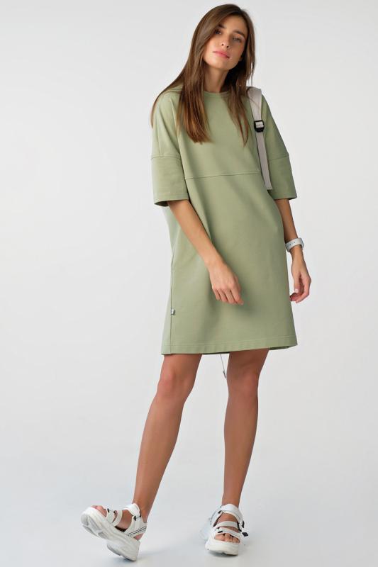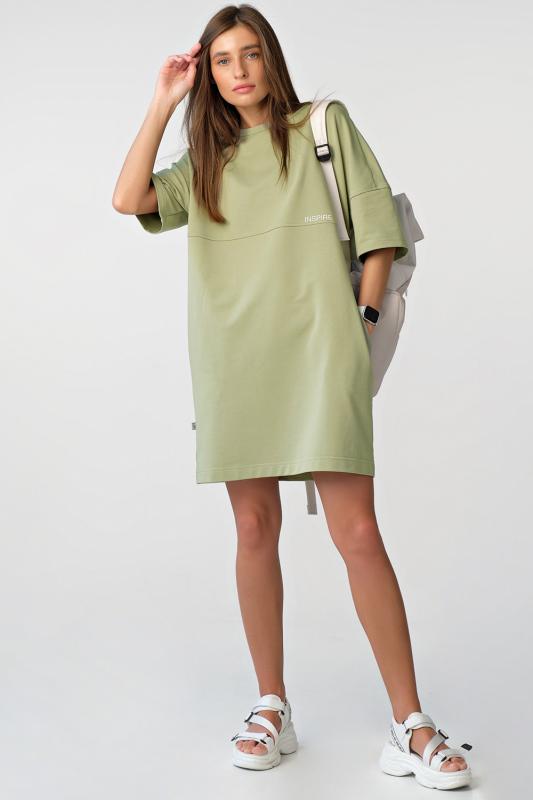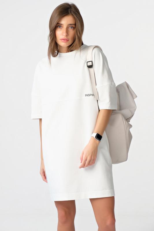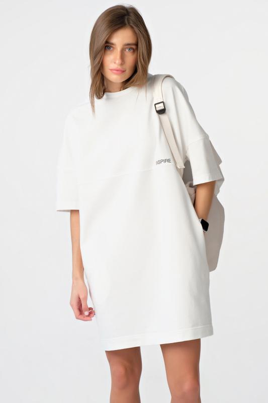 • Особенности: Платье-футболка свободного силуэта oversize из футера. Детали: горловина обработана окантовкой, поперечное членение по переду и спинке, широкий втачной рукав, карманы в боковых швах, принт по переду.
