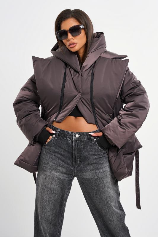 • Особенности: Куртка утепленная с капюшоном прямого силуэта из курточной ткани на подкладке. Детали: отложной воротник с лацканами, съемный капюшон, втачной рукав с внутренней манжетой на резинке, накладные карманы с цельнокроенными клапанами, застежка на кнопки по переду, пояс.