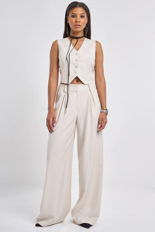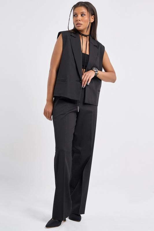 • Особенности: Жилет прямого силуэта из костюмной ткани на подкладке. Детали: двубортный покрой, классический пиджачный воротник с лацканами, прорезные карманы с клапанами, шлица в среднем шве спинки. Застежка на петли-пуговицы.