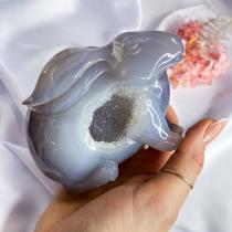 Кролик резной из Агата с жеодой, 6х12 см, Бразилия