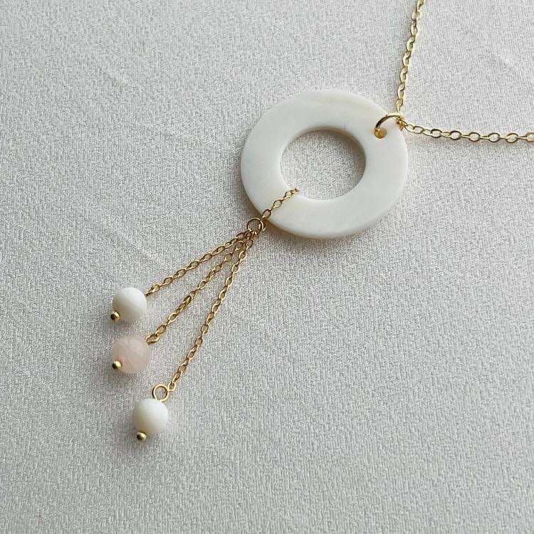 Кулон на цепочке из Перламутра с Розовым кварцем, 55 см +, 6 мм, гладкий