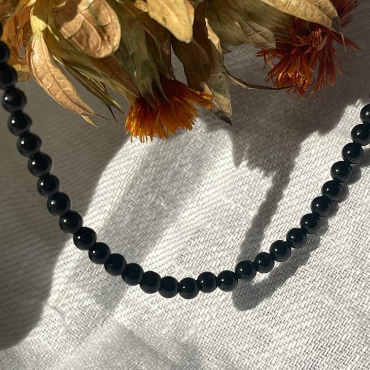 Бусы из черного Турмалина, 39 см + – 45 см +, 4 мм, гладкий, Бразилия