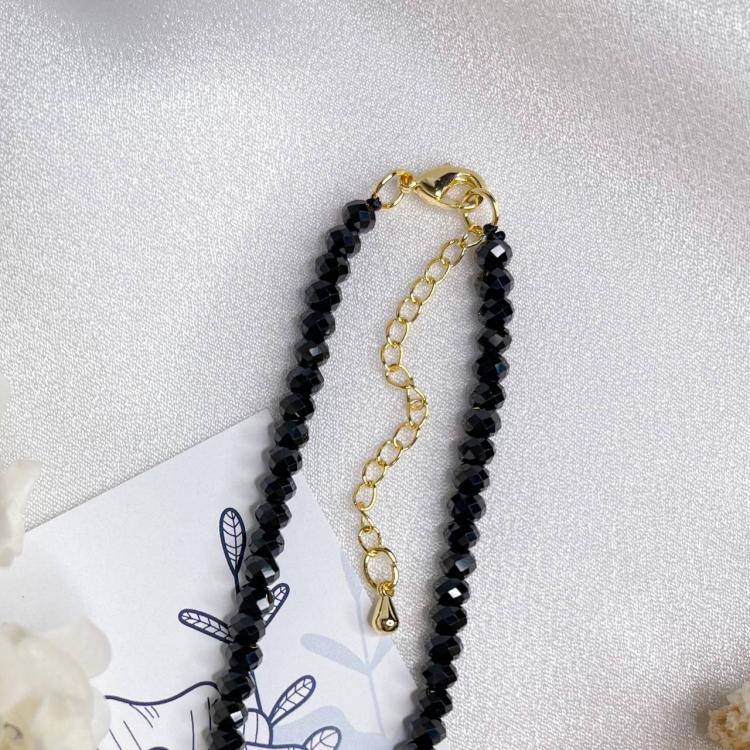 Бусы с подвеской "Клевер" из черной Шпинели огранка, 42 см + – 45 см +, граненый, Шри-Ланка