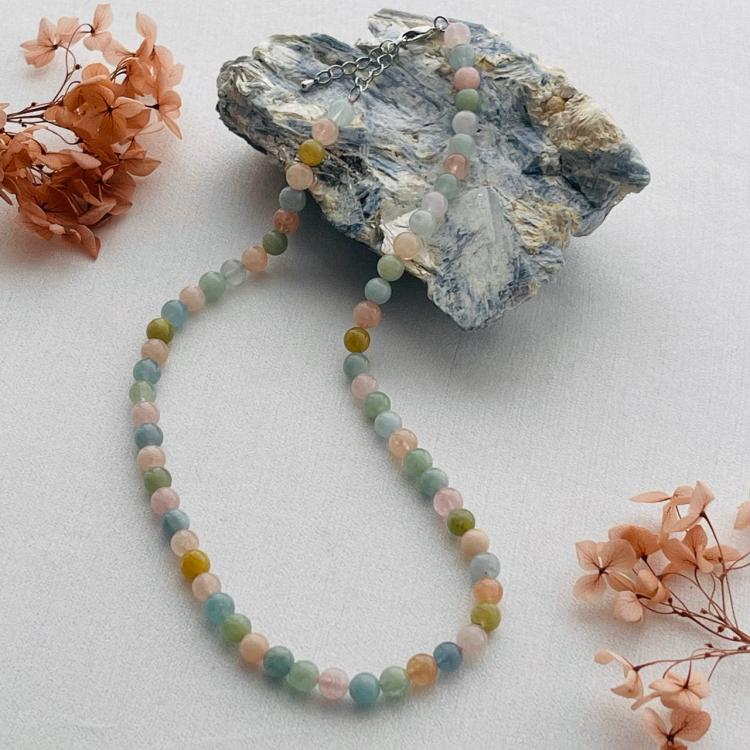 Бусы из Берилла, Аквамарина и Морганита, 45 см +, 6,5-7 мм, гладкий, Бразилия