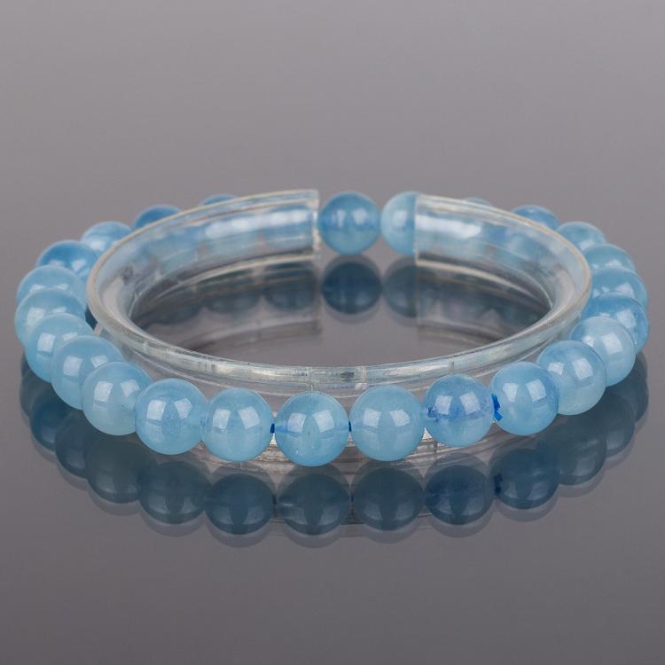 Браслет Аквамарин (Бразилия), 18 см – 19 см, 8 мм, гладкий