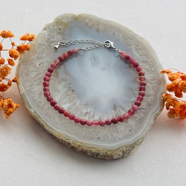 Браслет из розового Турмалина, 17 см +, 4 мм, гладкий, Бразилия