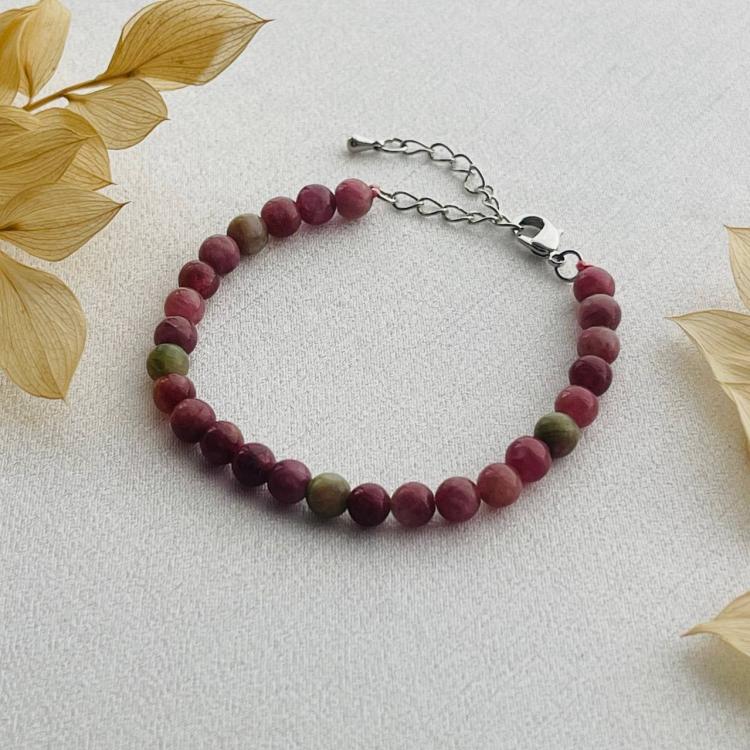 Браслет из розового Турмалина, 16,5 см + – 19 см +, 6 мм, гладкий, Бразилия