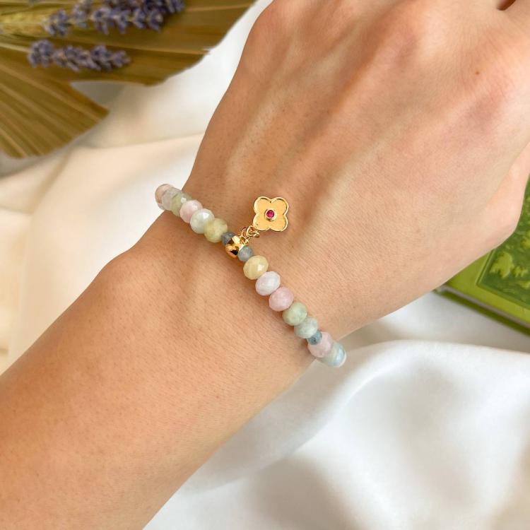 Браслет с подвеской из Берилла микс огранка, 19 см +, граненый, Бразилия
