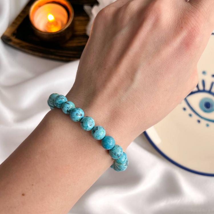 Браслет из Хризоколлы, 18 см, 8,5 мм, гладкий, Африка