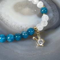Браслет из Апатита и Селенита с подвеской (фианит), 15 см, гладкий, Бразилия