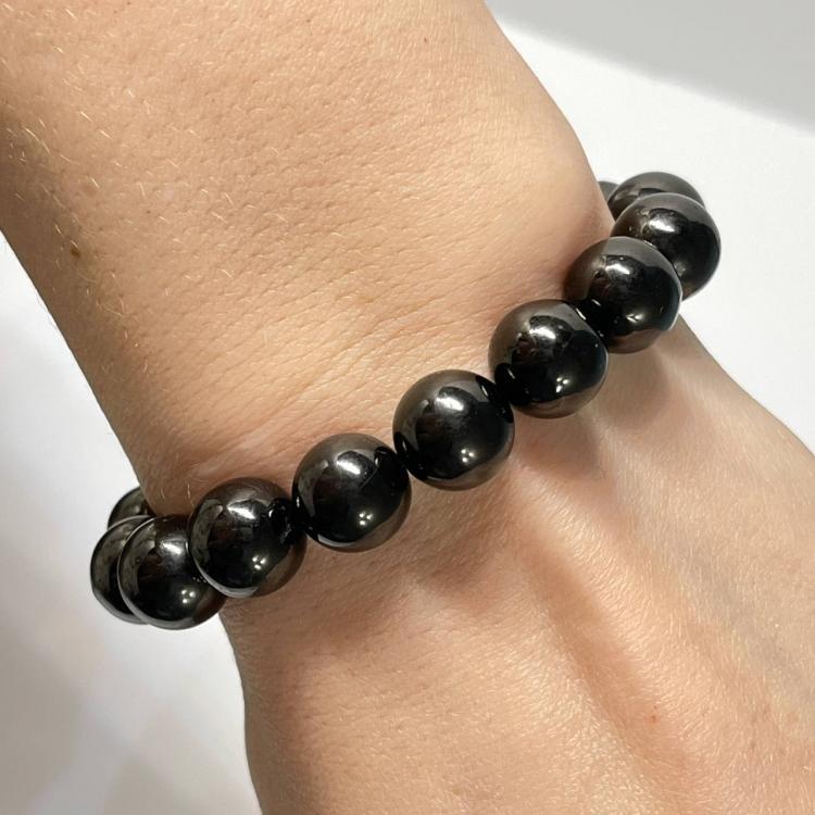 Браслет из Шунгита, 18,5 см – 22 см , 10,5 мм, гладкий