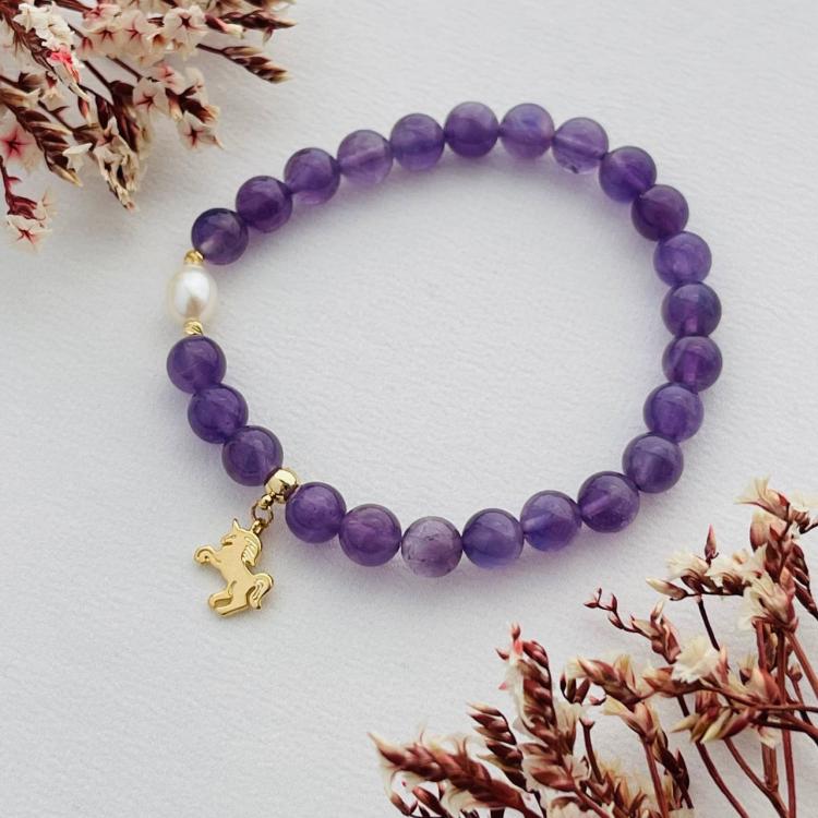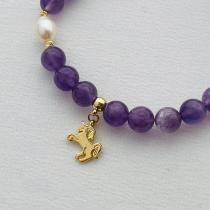 Браслет из Аметиста и Жемчуга с подвеской, 15 см – 16 см, гладкий, Бразилия