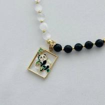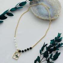 Колье на цепочке с подвеской из Селенита и черного Агата ручной работы