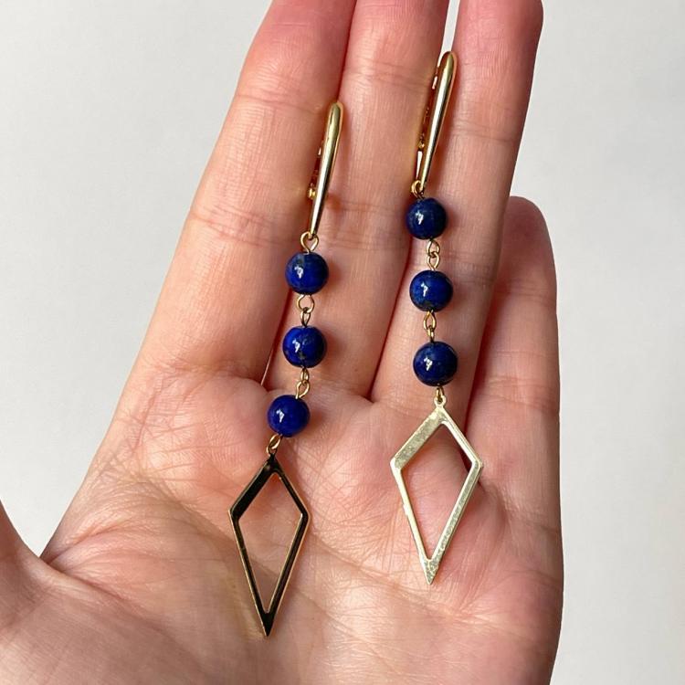 Серьги длинные из Лазурита, 6,5 мм, гладкий, английский замок, Афганистан