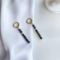 Серьги длинные из черной Шпинели и Лазурита, 4 мм, гладкий/Граненый, кольцевой замок, Шри-Ланка