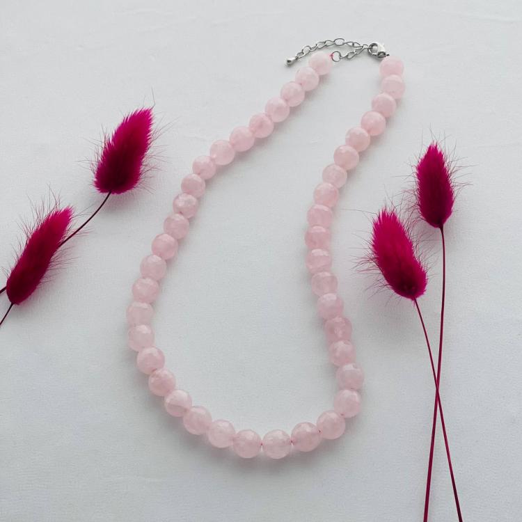 Бусы из Розового кварца, 45 см +, 10 мм, граненый, Бразилия