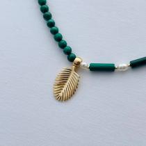 Колье из Малахита и Жемчуга, 40 см + – 45 см +, 5 мм, Африка