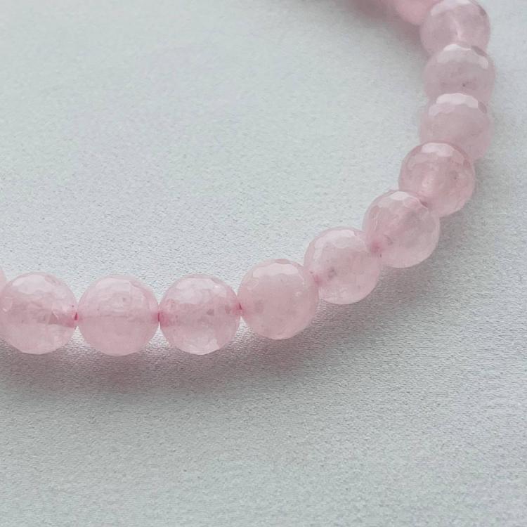 Бусы из Розового кварца (облагороженный), 45 см +, 8 мм, граненый, Бразилия