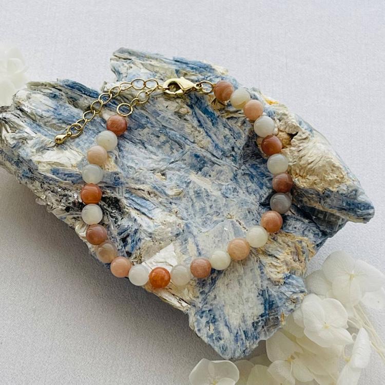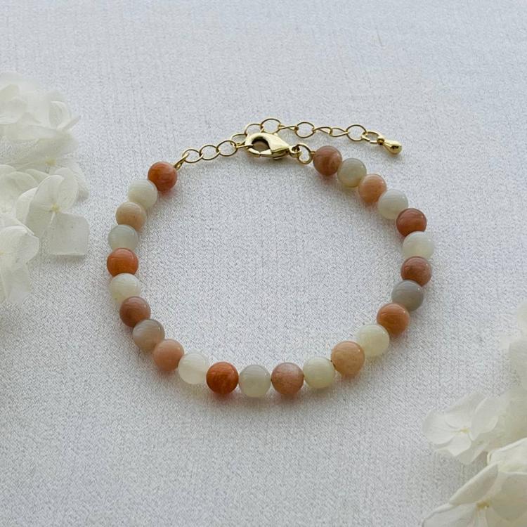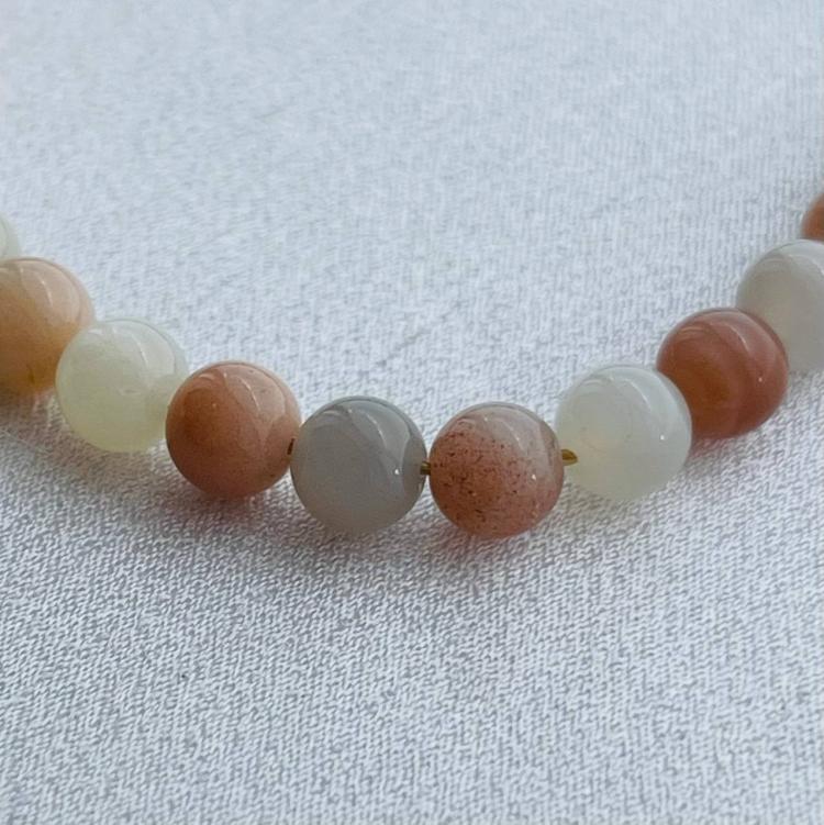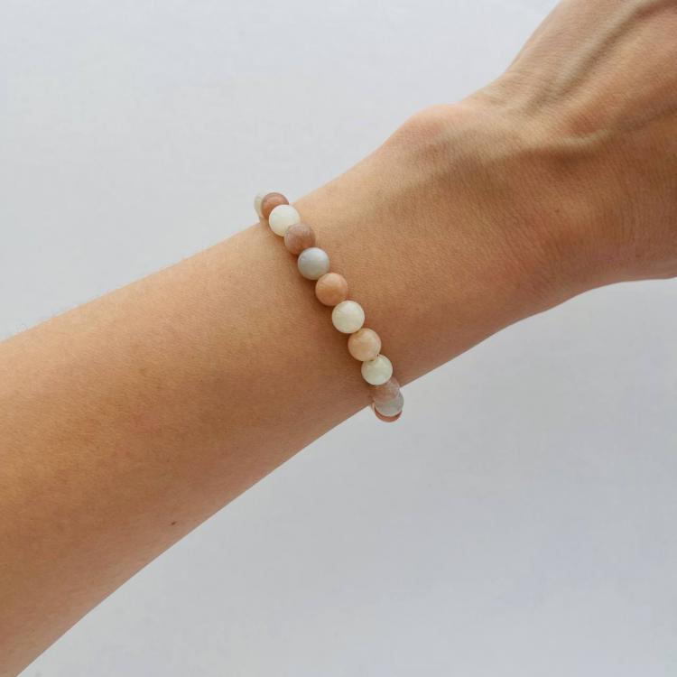 Браслет из Лунного камня микс, 18 см +, 6 мм, гладкий, Индия