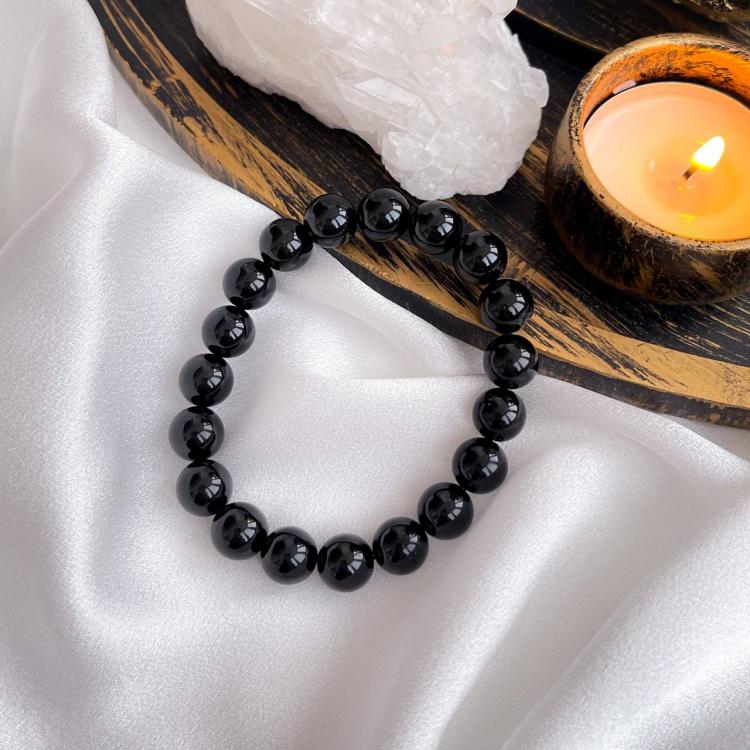 Браслет из черного Турмалина "Шерл", 17 см – 21 см, 10 мм, гладкий, Бразилия