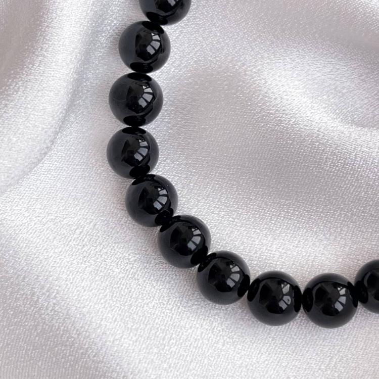 Браслет из черного Турмалина (Шерл), 17 см – 22 см , 8,5 мм, гладкий, Бразилия