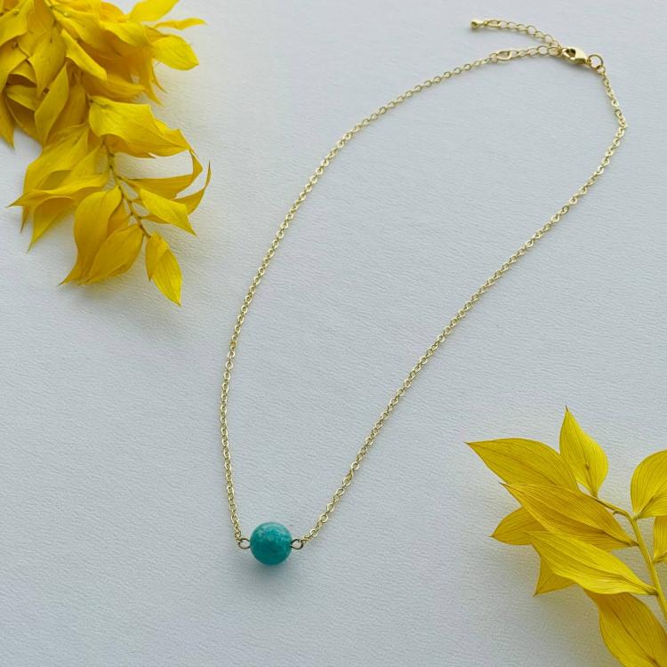 Кулон на цепочке из Амазонита, бижутерный сплав, Перу