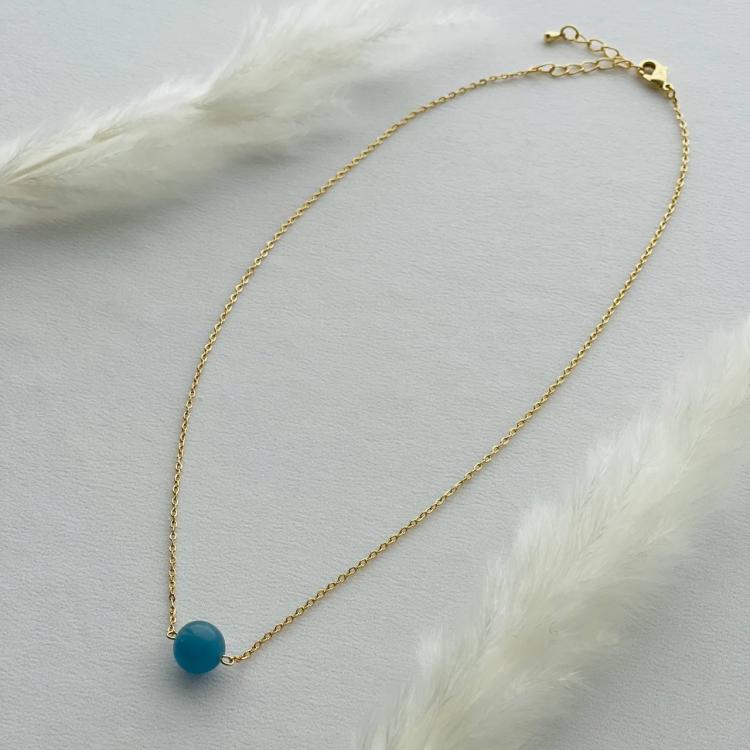Кулон на цепочке из Карибского кальцита, бижутерный сплав