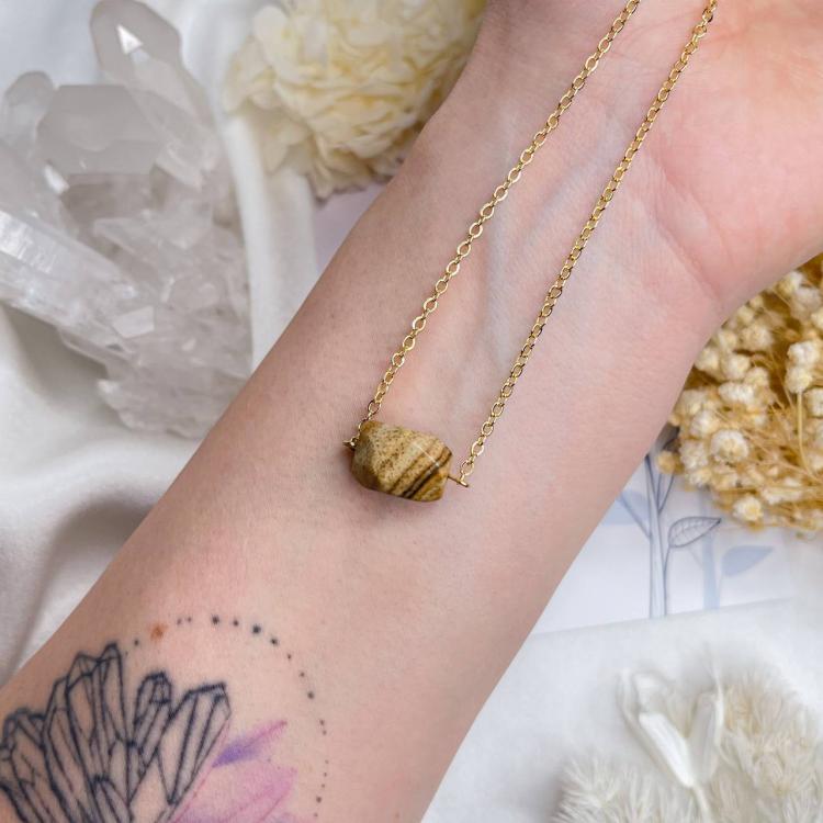 Кулон на цепочке с Яшмой песочной, 11х14 мм, бижутерный сплав, Африка