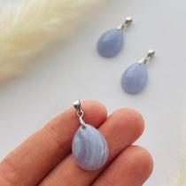 Кулон из голубого Агата, 13х18 мм, серебро (покр), Бразилия