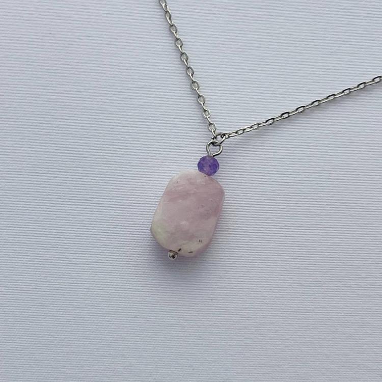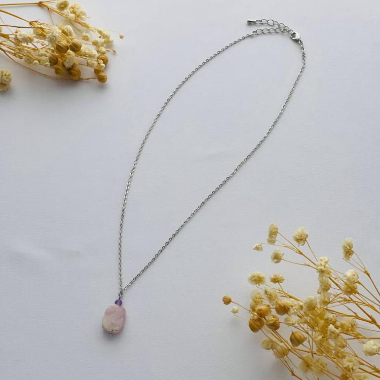 Кулон на цепочке из Кунцита с Аметистом, 11х15 мм, бижутерный сплав, Бразилия
