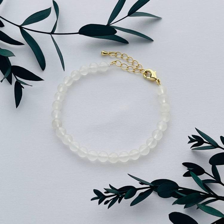 Браслет из Лунного камня, 18 см +, 6 мм, гладкий, Индия