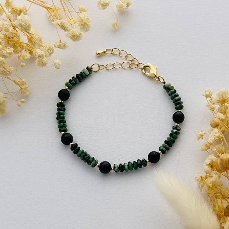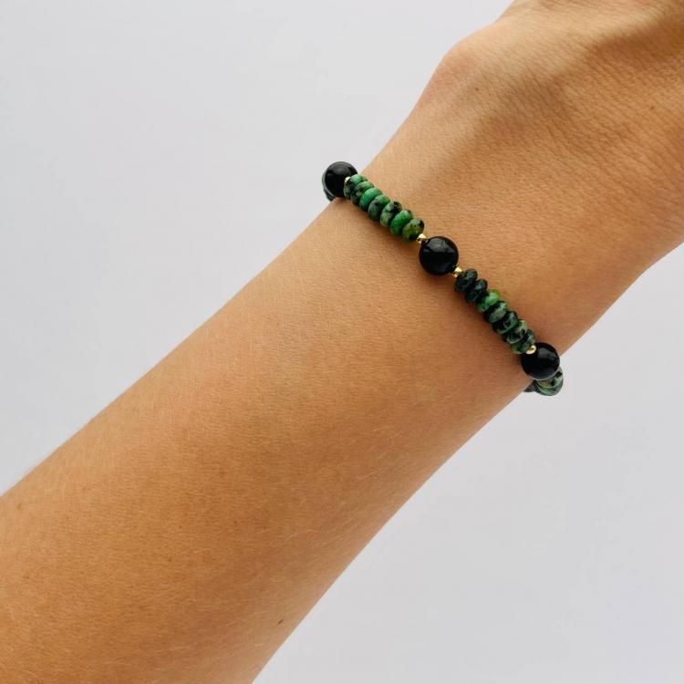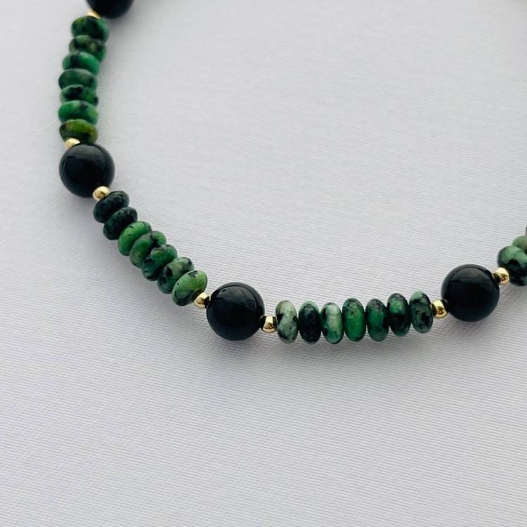 Браслет из Цоизита и черного Турмалина, 16 см + – 18 см +, 6 мм, гладкий, Африка