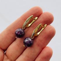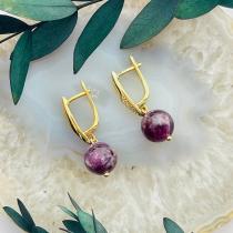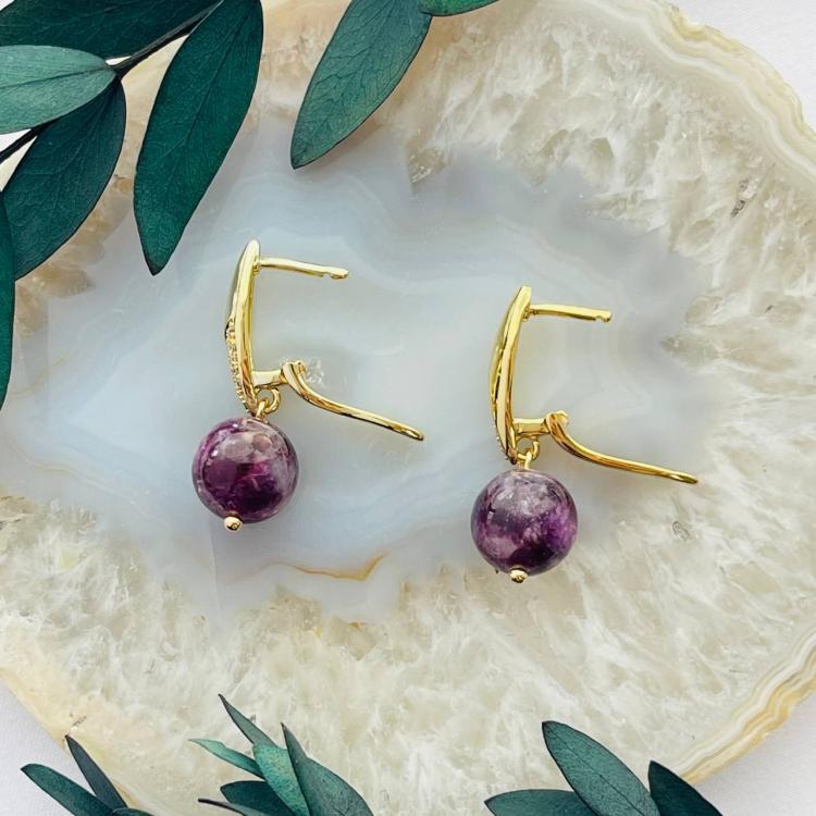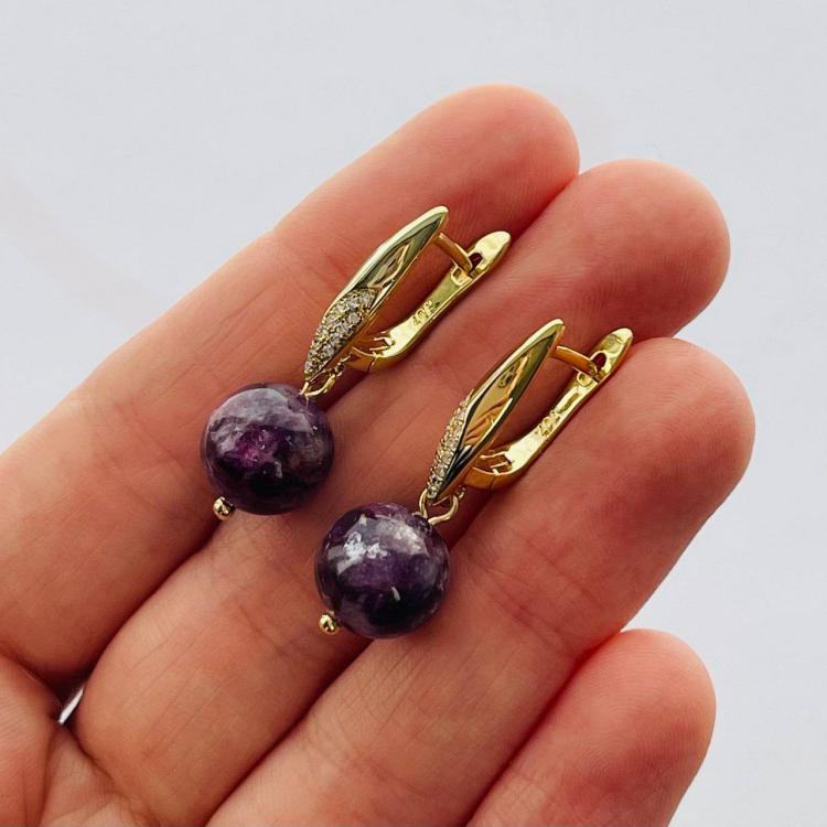 Серьги из Лепидолита, 10,5 мм, гладкий, английский замок, Мадагаскар