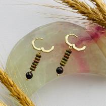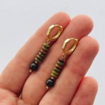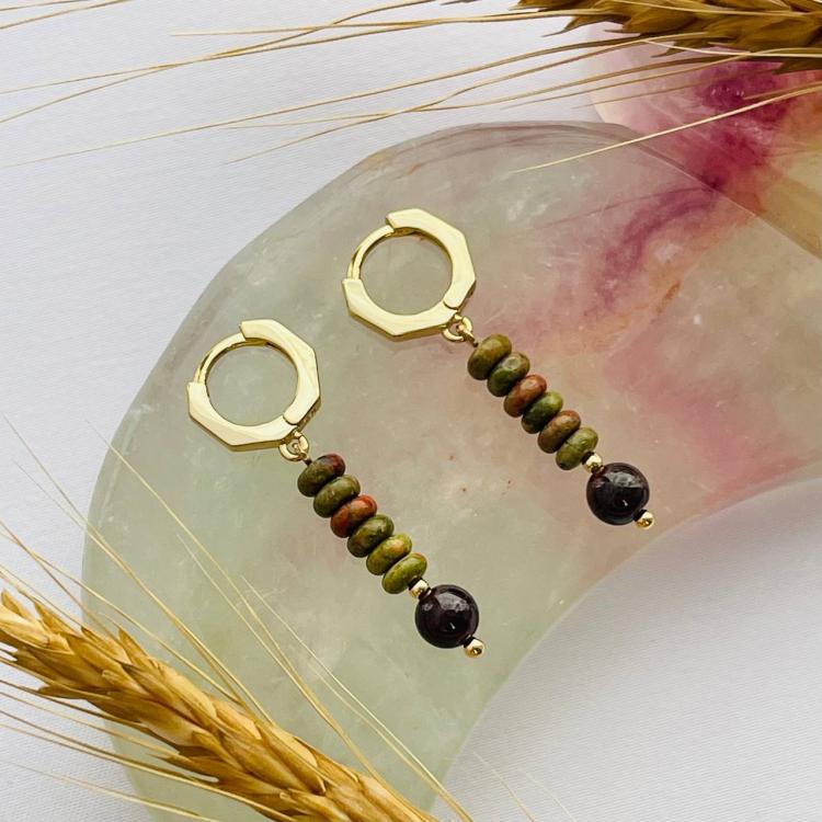 Серьги из Унакита с Гранатом, 5-6 мм, гладкий, кольцевой замок, Африка