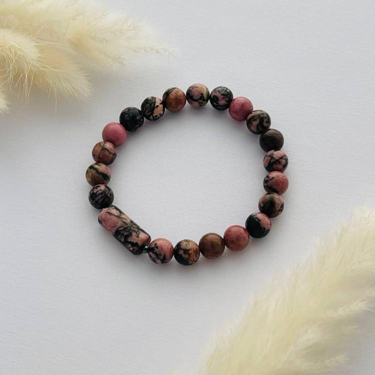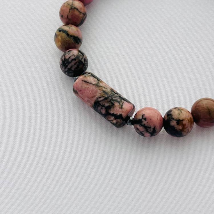 Браслет из Родонита, 16,5 см, 8 мм, гладкий, США