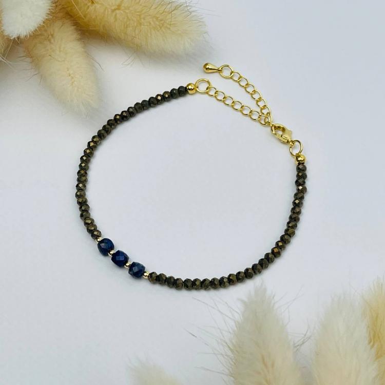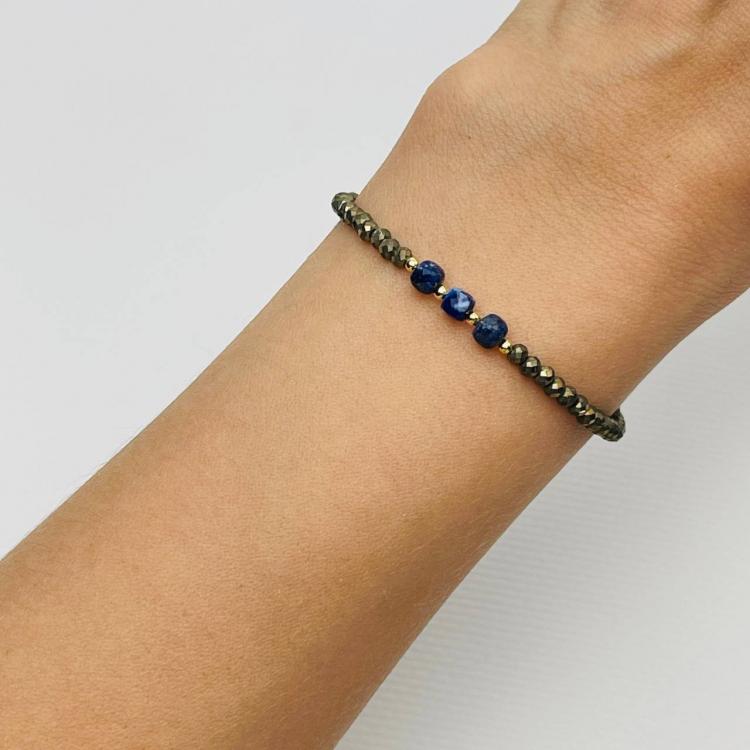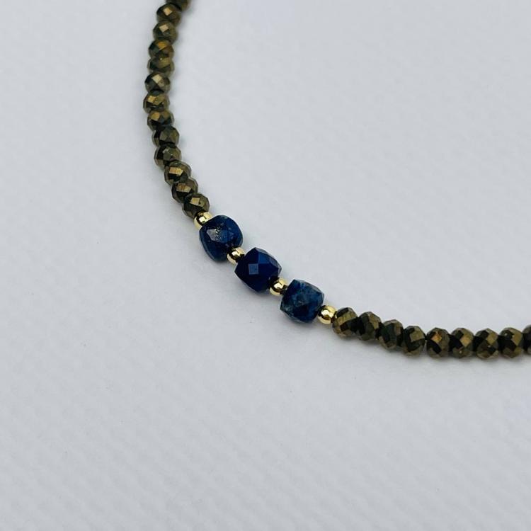 Браслет из Пирита с Лазуритом, 17 см + – 19 см +, граненый, Китай