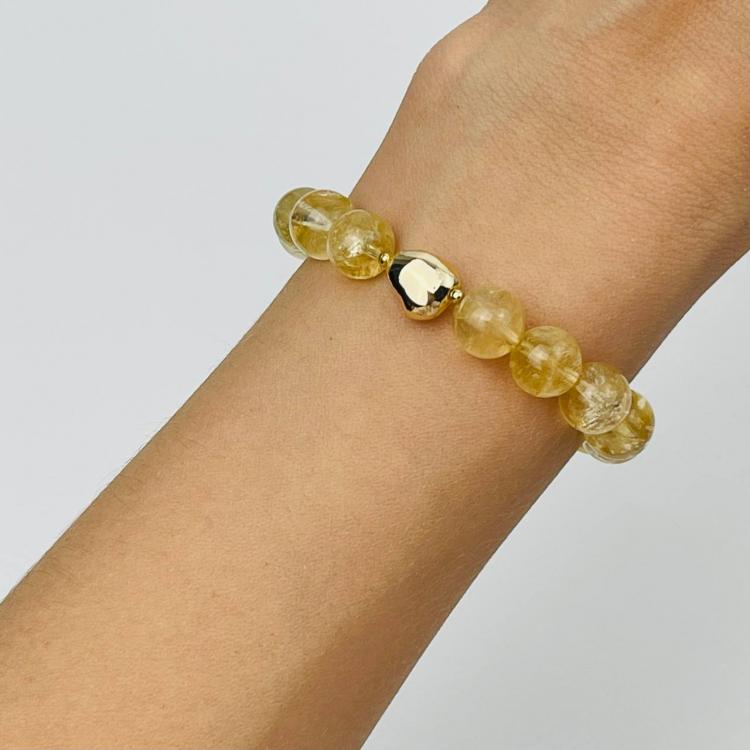 Браслет из Цитрина со вставкой, 17 см, 9,5-10 мм, гладкий, Бразилия