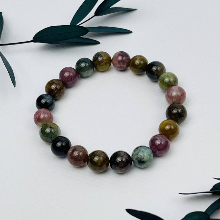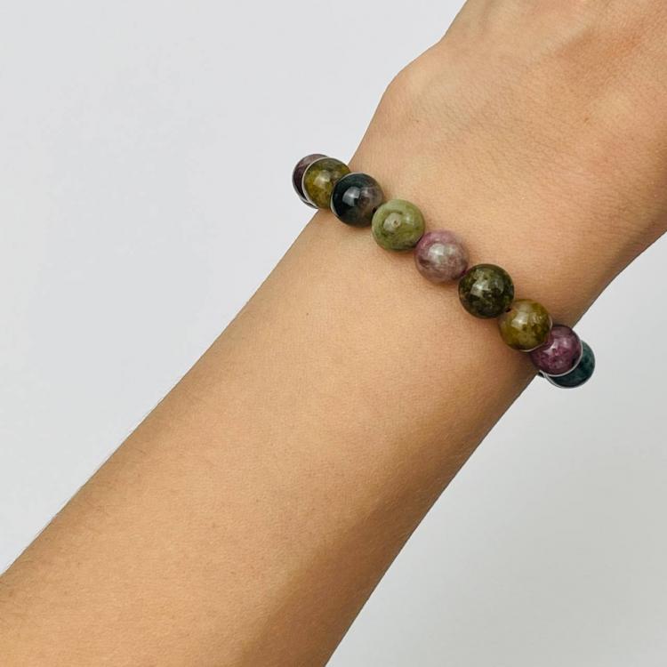 Браслет из Турмалина микс, 16 см – 19 см, 8 мм, гладкий, Бразилия
