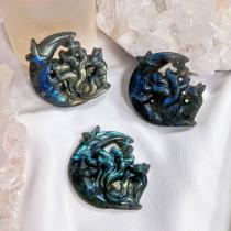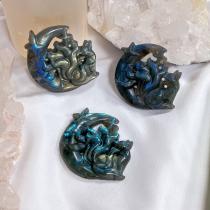 Фигурка резная Лиса "Кицунэ" из Лабрадора, 35х45 мм, Мадагаскар