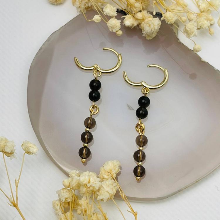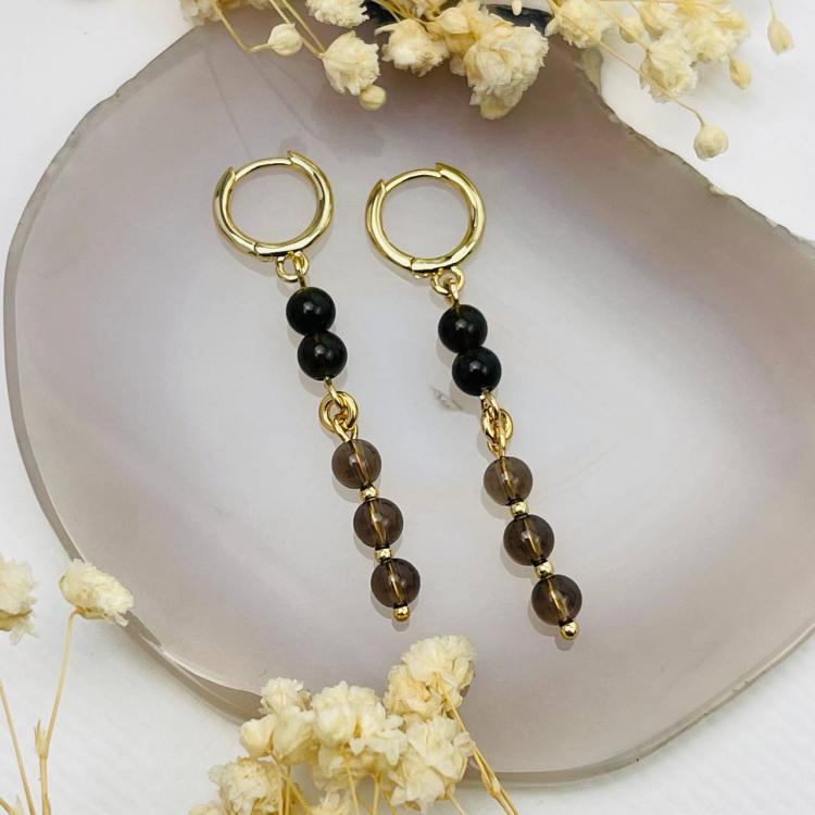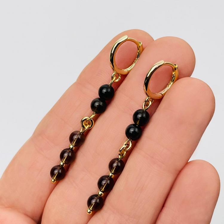 Серьги длинные из золотистого Обсидиана и Раухтопаза, 4,5 мм, гладкий, кольцевой замок, Мексика