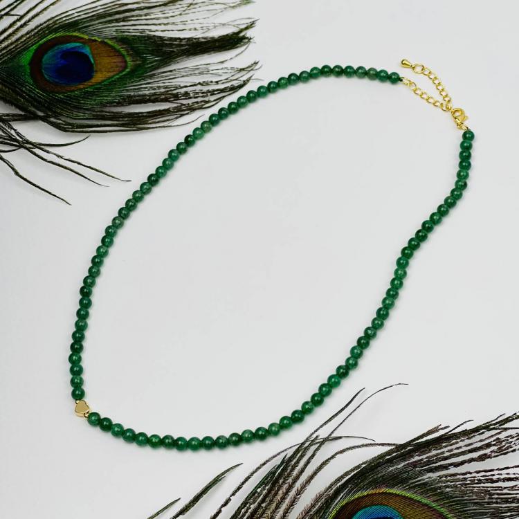 Бусы-Чокер из зеленого Авантюрина со вставкой "Сердце", 38 см + – 42 см +, 4,5 мм, гладкий, Бразилия