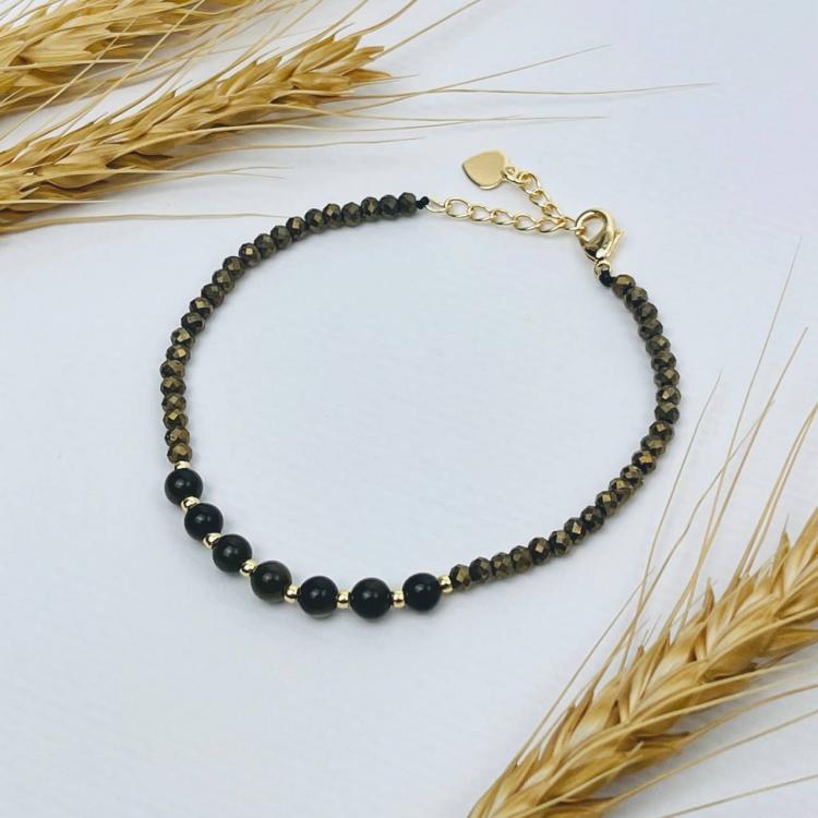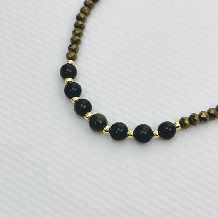 Браслет из Пирита с золотистым Обсидианом, 18,5 см +, 4,5 мм, гладкий/Граненый, Китай