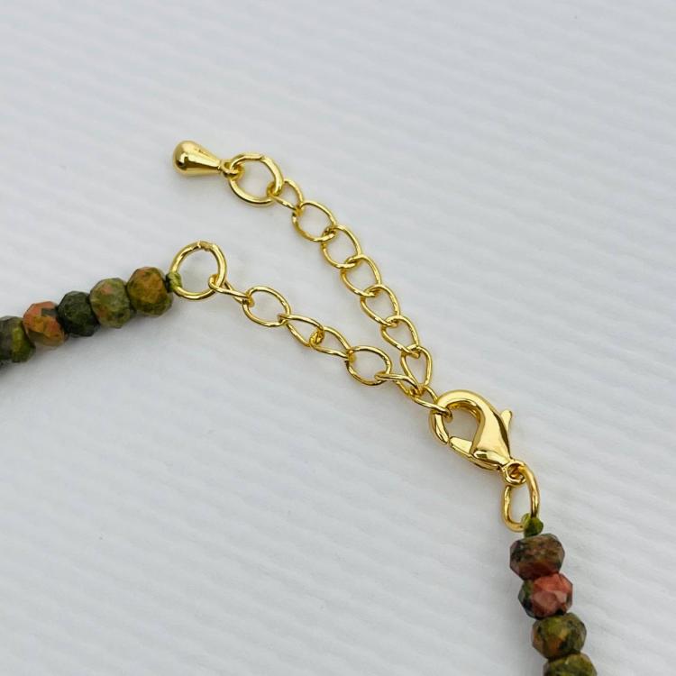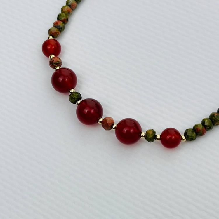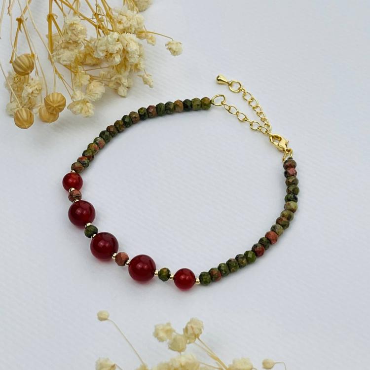 Браслет из Унакита и Сердолика, 18,5 см +, гладкий/Граненый, Африка