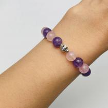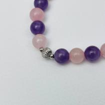Браслет из Аметиста и Розового кварца со вставкой, 16,5 см, 8,5 мм, гладкий, Бразилия