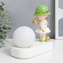 Фигурка светящаяся «Малышка в зелёной шляпке, с золотым пузырём у шара», полистоун, 16.5×8×16 см