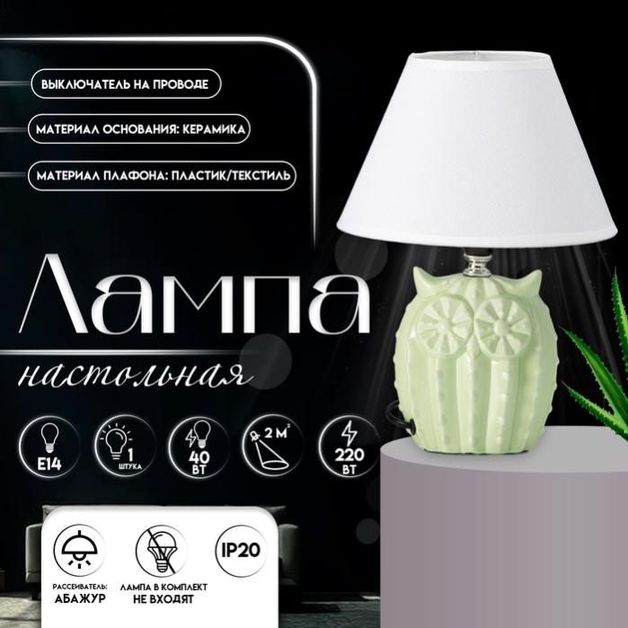 Настольная лампа с абажуром RISALUX «Сова», Е14, 40 Вт, салатовый, 20×20×29 см