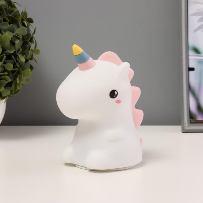 Фигурка светящаяся RISALUX «Единорог», LED-ночник, мякиш, USB, АКБ, белый, 9.5×13×14.5 см